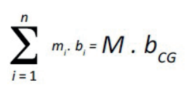 No primeiro termo da equação, o símbolo Σ (sigma) representa a soma de todos os produtos mi.bi, sendo que mi é a massa de um setor i e bi é o braço desse setor. M é a massa total e bCG é o braço do CG. Para simplificar os cálculos utilizamos a massa e não o peso (peso = massa x aceleração da gravidade), mas isso não afeta os cálculos finais.