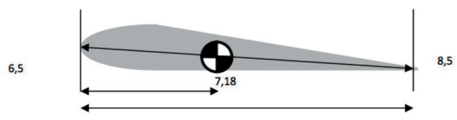 Lembre-se de que a sustentação gerada por uma asa é obtida a partir da integração de todas as pressões exercidas sobre ela, e tal resultante ocorre em um determinado ponto denominado Centro de Pressão (CP). Assim como o CG, a localização do CP também é expressa em termos de percentual da Corda Média Aerodinâmica, medida a partir do bordo de ataque do perfil. A próxima figura exemplifica a questão tratada anteriormente, com respeito às asas que não possuem perfil retangular.