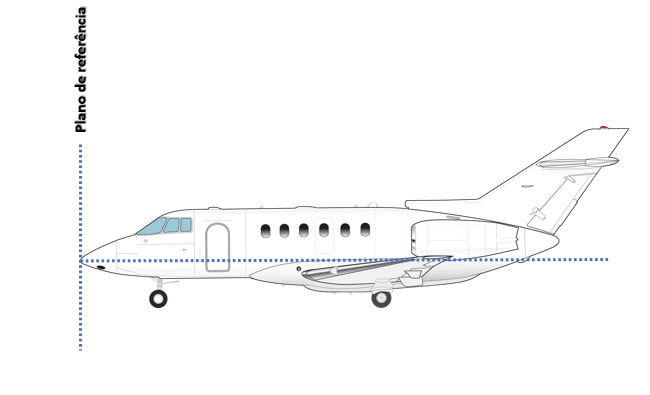 As duas figuras abaixo apresentam o posicionamento do Plano de Referência (Datum), respectivamente, para uma aeronave de pequeno porte e outra de médio