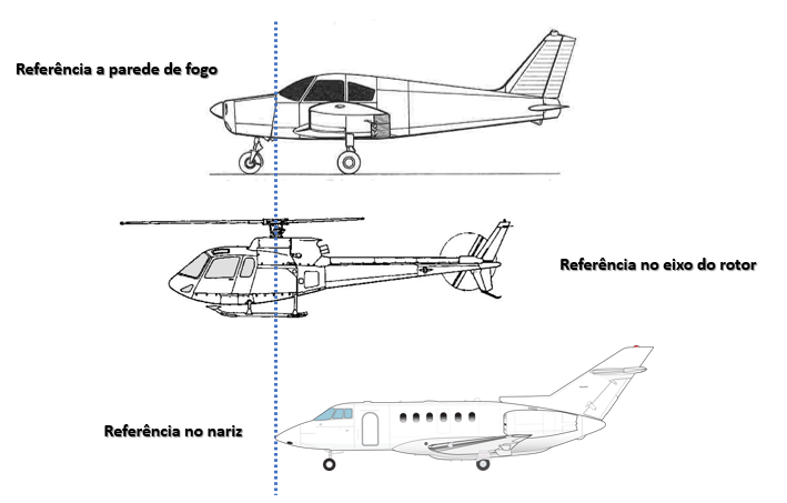 Por conveniência, costuma-se usar o plano à frente do nariz da aeronave, para que se obtenham números positivos e menores possíveis, facilitando os cálculos.