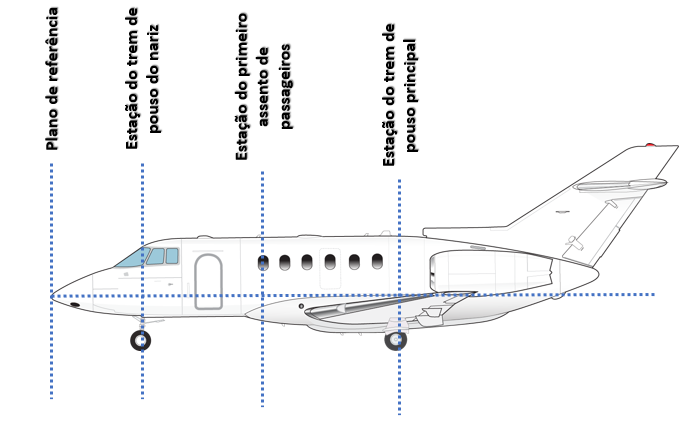 Estação – Nada mais é do que um local designado ao longo da fuselagem do avião, dado em função da distância do plano de referência, utilizado para facilitar a localização de uma determinada massa.