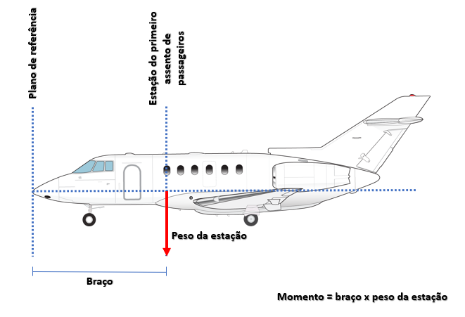 Também e advindo da física, existe o conceito de Braço que identifica a distância horizontal entre o plano de referência (Datum) e uma determinada Estação de interesse (por definição, o Braço apresentará valor positivo se for localizado à direita do Datum, e negativo quando se encontrar à esquerda). Igualmente oriundo da física, o Momento de um corpo qualquer é o produto de seu peso pelo braço, e corresponde ao torque em torno de um ponto situado no plano de referência.