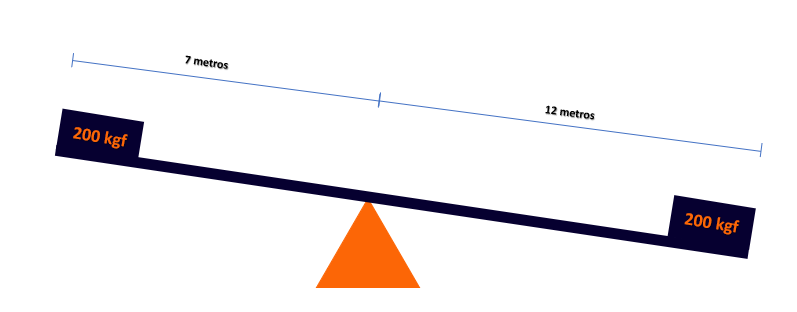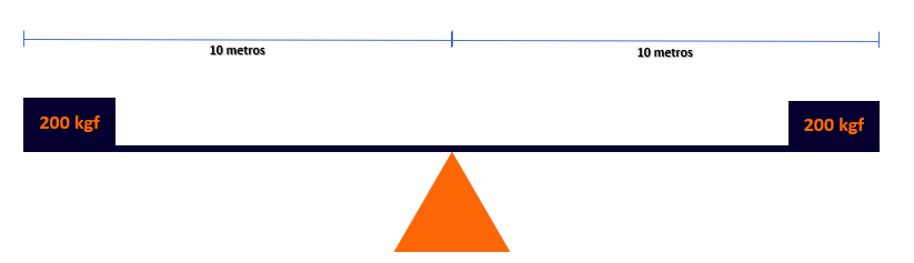 momentos iguais (2.000 m x Kgf) em relação ao ponto de apoio. Nessa condição, observa-se um equilíbrio e a gangorra não se move.