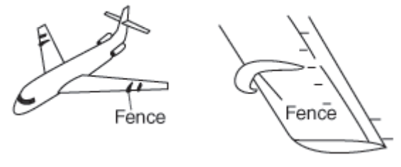 Wing Fences, são “cercas” aerodinâmicas em forma de placas, colocadas normalmente em aviões que possuem asas enflechadas, cuja finalidade é evitar que o fluxo de ar se desloque rapidamente da parte interna das asas para as pontas, gerando assim uma perda de sustentação muito rápida.