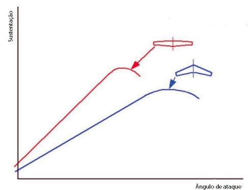 forma muito mais intensa do que em uma asa convencional. A figura abaixo ilustra essas características.