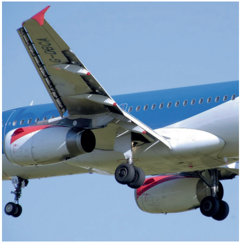 Assim, para operarem de forma segura e eficiente nos momentos de decolagem e pouso, tais aeronaves não podem dispensar o uso de dispositivos hipersustentadores. Na figura abaixo, uma aeronave de operação em regime transônico, pesada e com asas enflechadas, aproxima-se para pouso. Repare no amplo uso de dispositivos que aumentam a sustentação em momentos críticos, como os Flapes e os Slats.