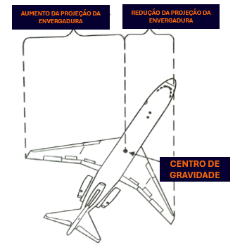 Repare na figura abaixo. A aeronave sofre uma guinada para a direita. Em seguida, a asa esquerda avança à frente da asa direita, produzindo maior nível de sustentação, o que provoca uma tendência de giro para a direita. Porém, diferente das asas convencionais, com as asas enflechadas essa tendência de giro é ainda maior. Na figura, observe que temos uma “redução da projeção da envergadura”, na asa da direita, e um aumento dessa “projeção” na asa esquerda (a asa que avança). Ou seja, é como se momentaneamente tivéssemos uma “asa esquerda muito maior” do que a asa direita. No fim das contas, o rolamento de uma asa enflechada acaba sendo mais intenso do que o de uma asa convencional, e provoca um equilíbrio dinâmico instável denominado Dutch Roll. Agindo como um pêndulo, a aeronave retorna a uma situação de equilíbrio, mas ultrapassa tal ponto, “invertendo” a tendência, e assim inicia um movimento pendular. Ao invés de diminuir o arco do pêndulo, este aumentará cada vez mais.