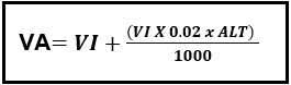 Da VI de uma aeronave, a VA aumenta 2% para cada 1000 Ft. Os cálculos por sua vez consistem em determinar 2% da VI, multiplicar o seu valor pelo nível de voo e somar o resultado a VI. Com isso será obtida a VA para o determinado nível. Utilize a formula abaixo para facilitar.