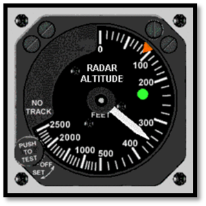 É o instrumento que baseia o seu funcionamento em um radar, que serve para medir a altura da aeronave. Observar que foi mencionado altura e não altitude. O rádio altímetro emite um pulso no sentido do terreno sobrevoado, o terreno por sua vez reflete imediatamente o pulso, que é capitado por um receptor na aeronave.