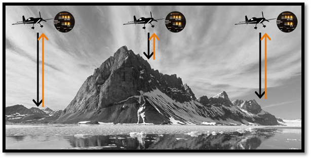 Altitude absoluta ou altura – É a distância vertical entre o terreno e um ponto de referência em altitude. Essa altitude será sempre a mostrada no radio altímetro.