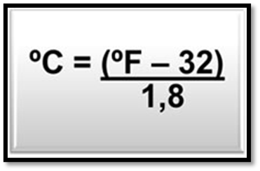 A temperatura em aviação pode ser lida em graus Celsius ou Fahrenheit. Para fazer a conversão basta utilizar a formular mostrada ao lado ou a tabela de leitura que se encontra no computador de voo.
