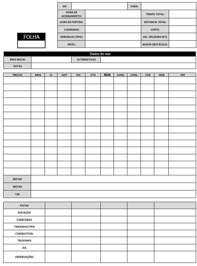 Para facilitar e organizar os dados existem as folhas de planejamento onde os pilotos vão inserir essas informações.