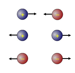 Cargas elétricas – Os prótons possuem uma propriedade elétrica denominada carga positiva, e os elétrons, carga negativa. Duas cargas positivas ou negativas se repelem, mas uma carga negativa e outra positiva se atraem. Esse fato simples é o fundamento básico da eletricidade. Os nêutrons não possuem carga elétrica, e por isso são eletricamente neutros.