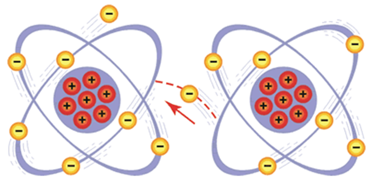 Elétrons livres – Os elétrons giram em diversas órbitas ao redor do núcleo. Em materiais metálicos como o cobre, alumínio, etc. Os elétrons da órbita mais externa podem passar de um átomo ao outro, e por isso são denominados elétrons livres. Quando os elétrons livres movimentam-se ao longo de um fio, dizemos que há uma corrente elétrica nesse fio. E os materiais que permitem a passagem da corrente elétrica são denominados materiais condutores.