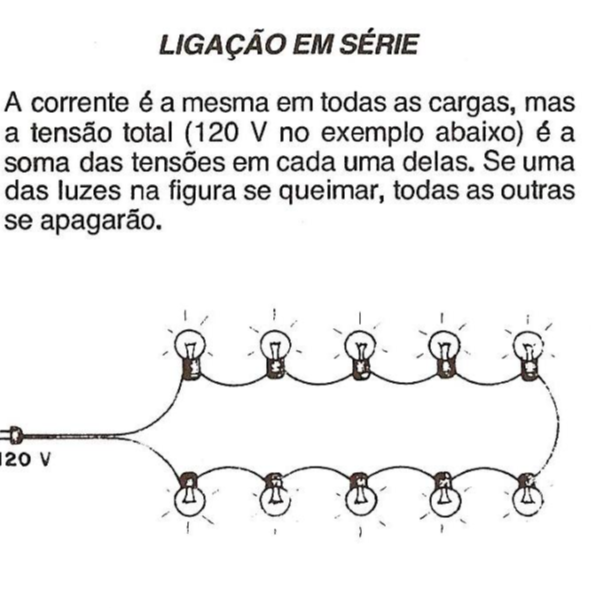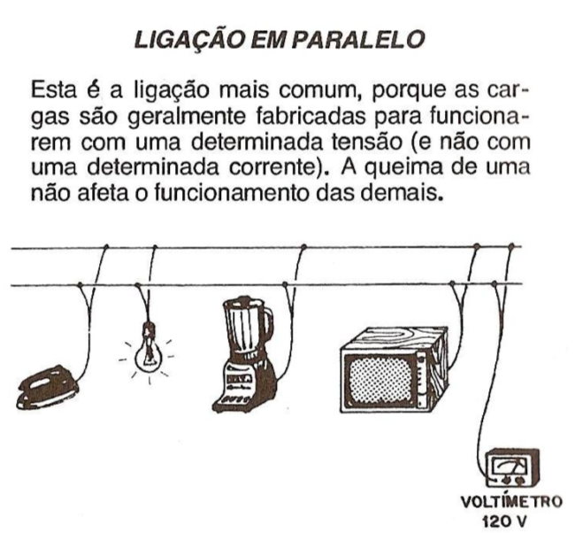 Ligação de cargas – “Carga” é tudo aquilo que consome eletricidade, como as lâmpadas, motores, etc. As principais formas de ligar duas ou mais cargas entre si são:
