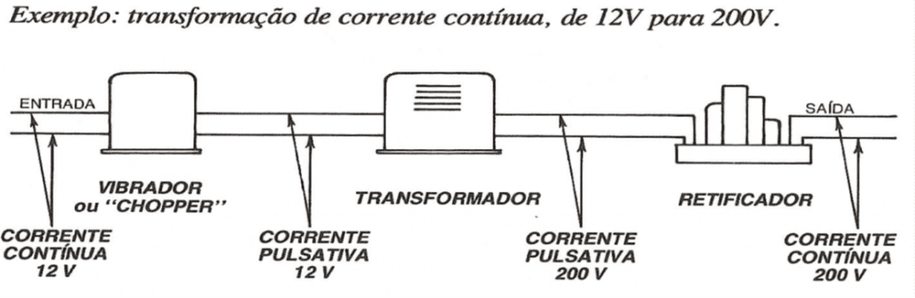 Transformação de corrente contínua – O transformado não funciona com o corrente contínua porque esta produz um campo magnético fixo, que não induz tensão no enrolamento secundário. Quando se torna necessário aumentar ou diminuir uma tensão contínua, é preciso utilizar os dispositivos ilustrados abaixo: